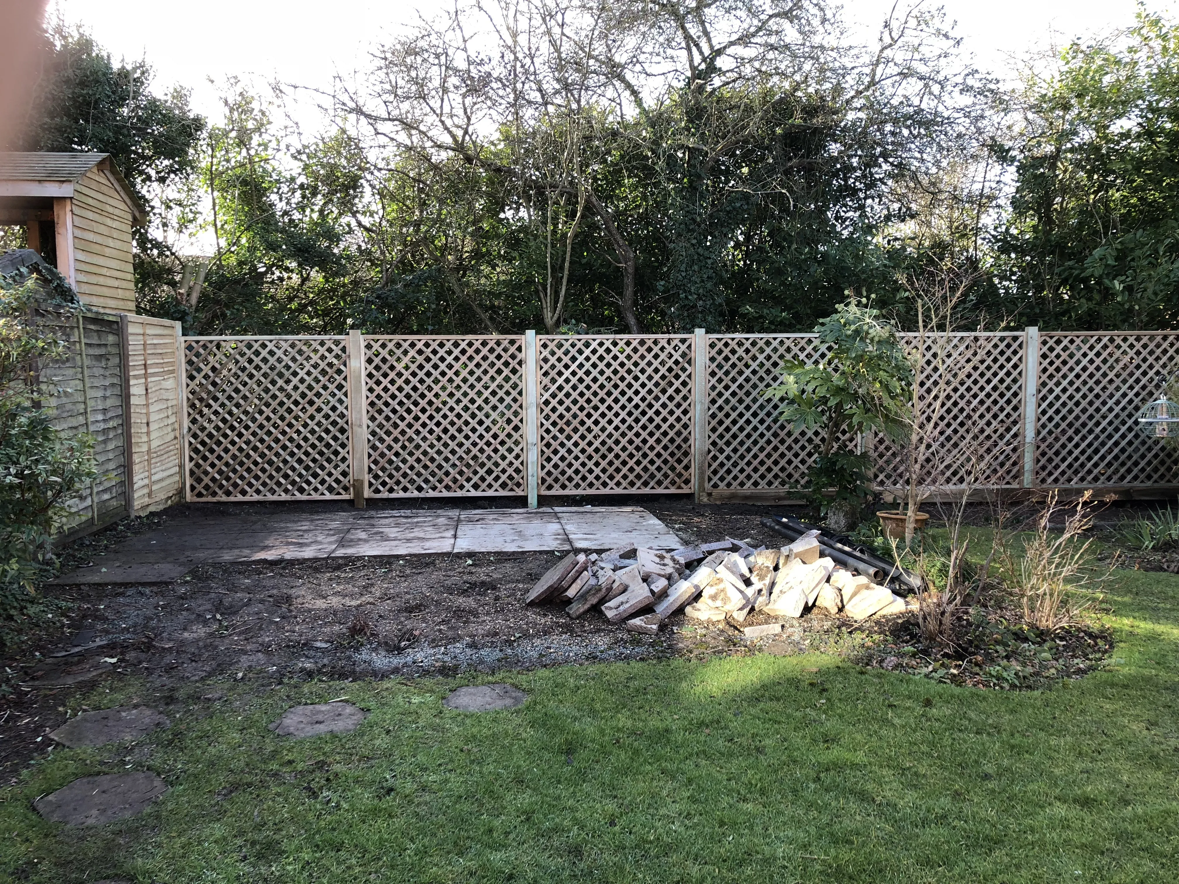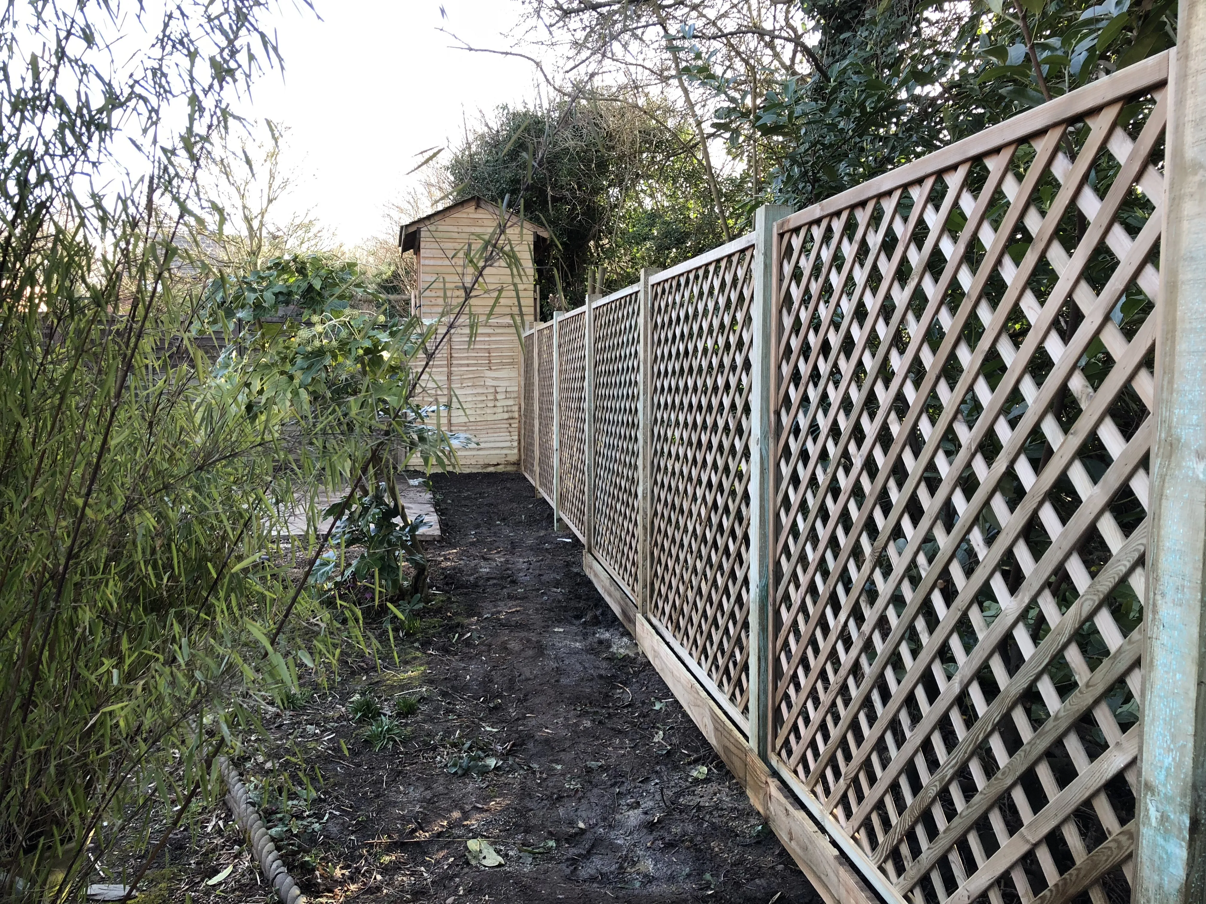 6ft Diamond Trellis panels installed on a 6-inch Gravel Board.